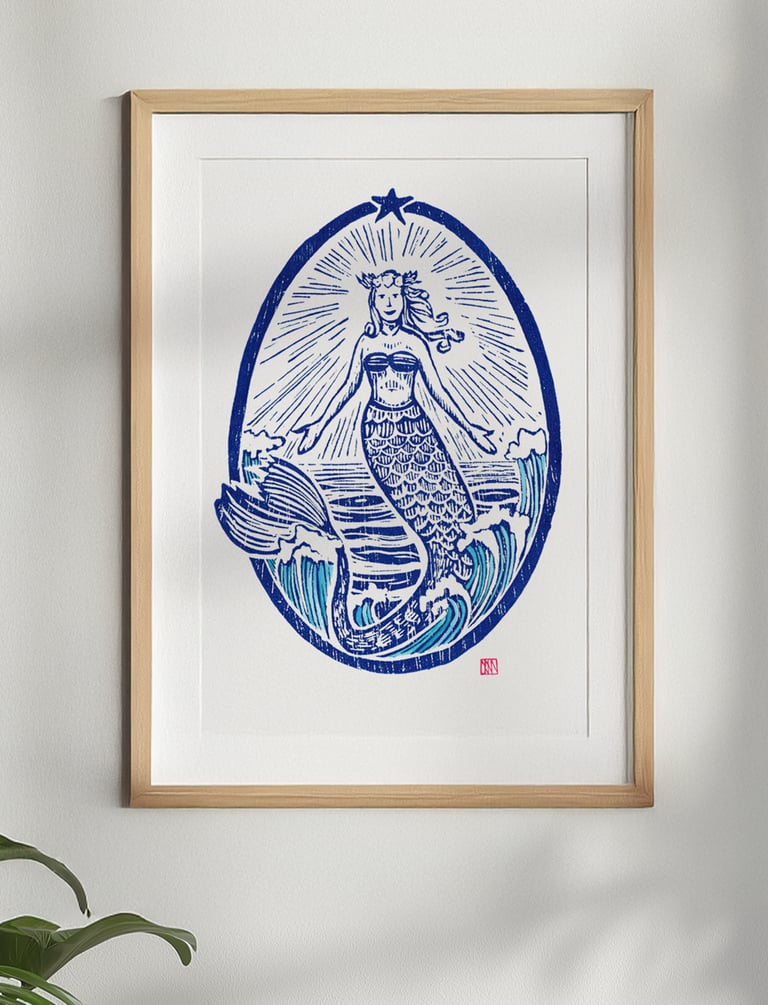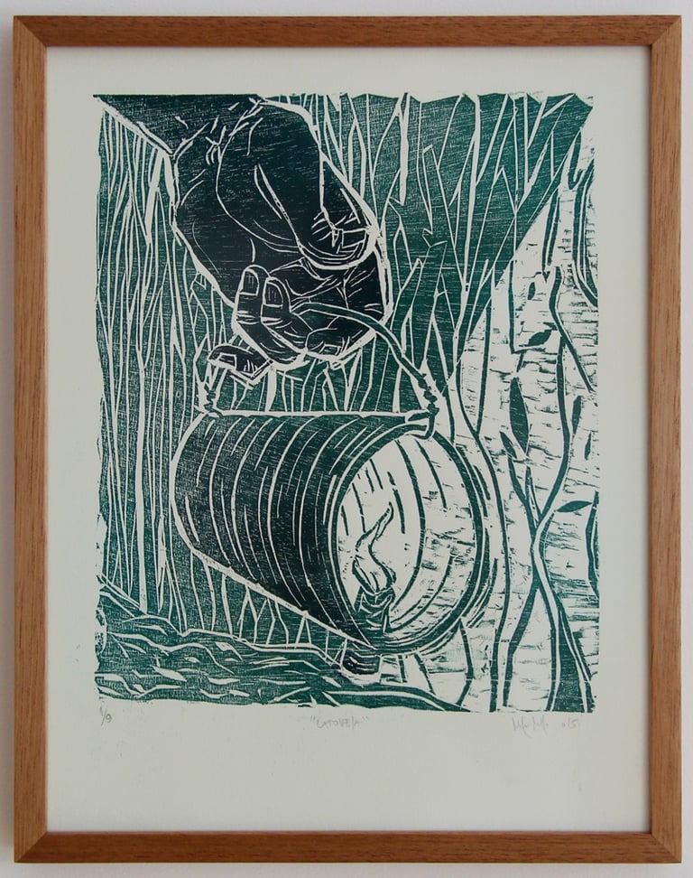 Impressão de gravura em madeira.