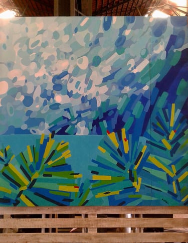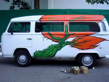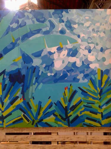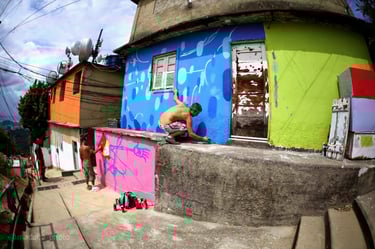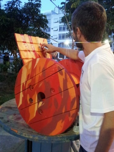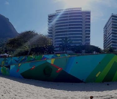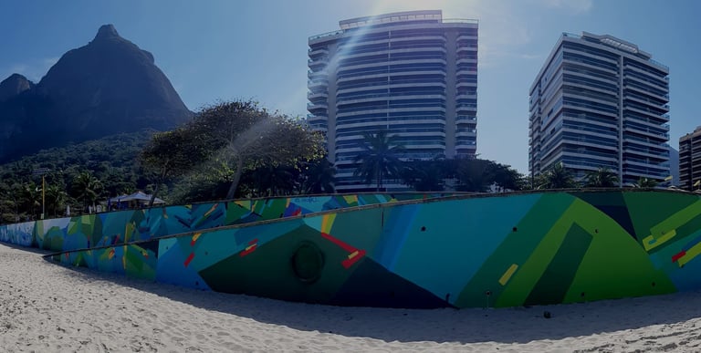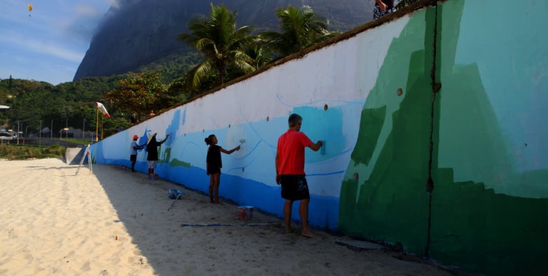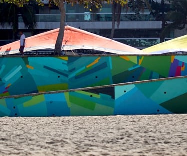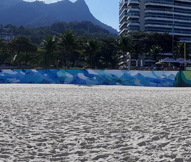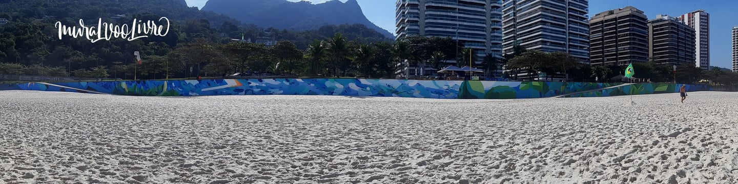 Pintura realizada para sinalização da pista de pouso de asa delta em São Conrado, Rio de Janeiro.
