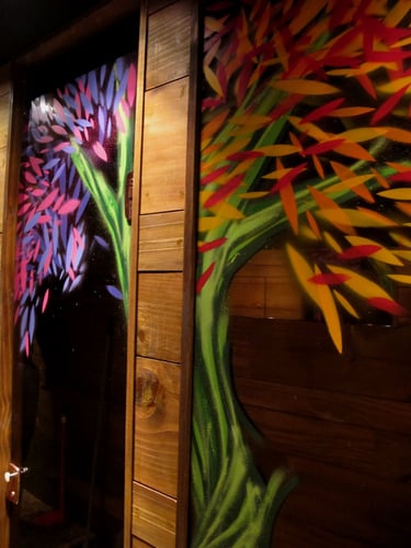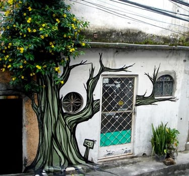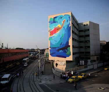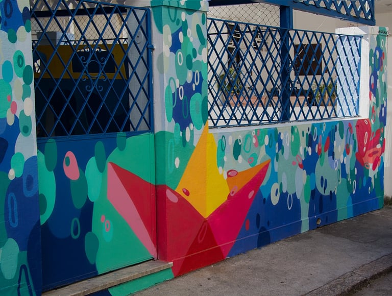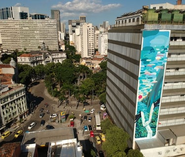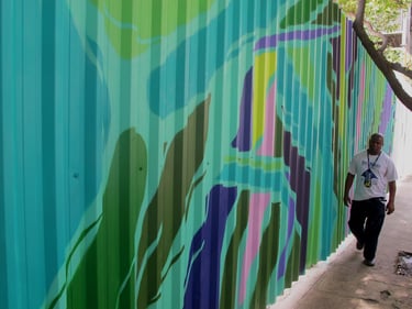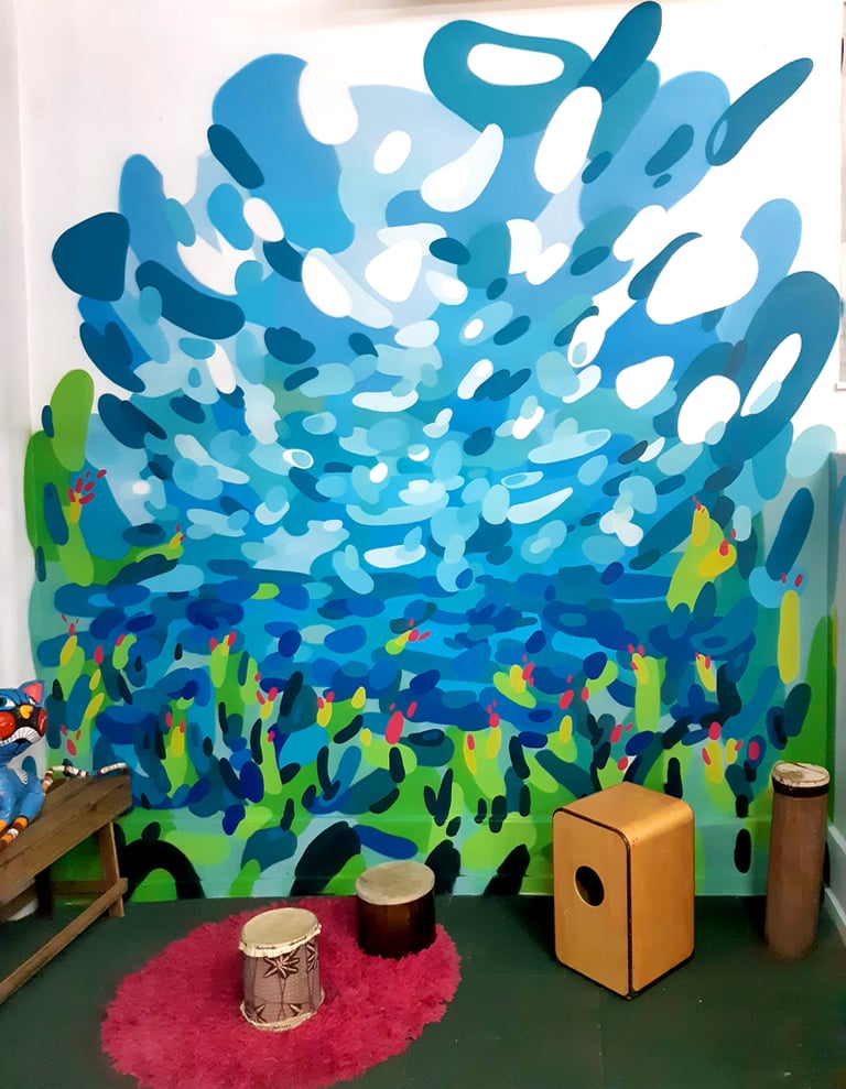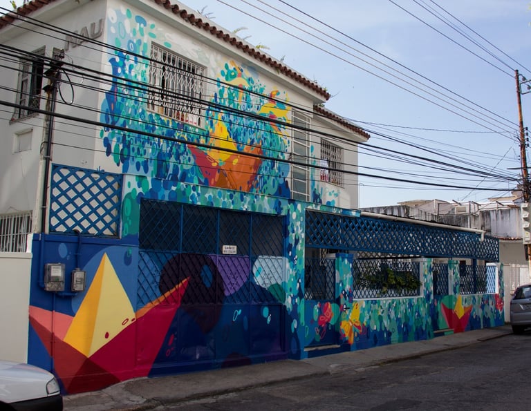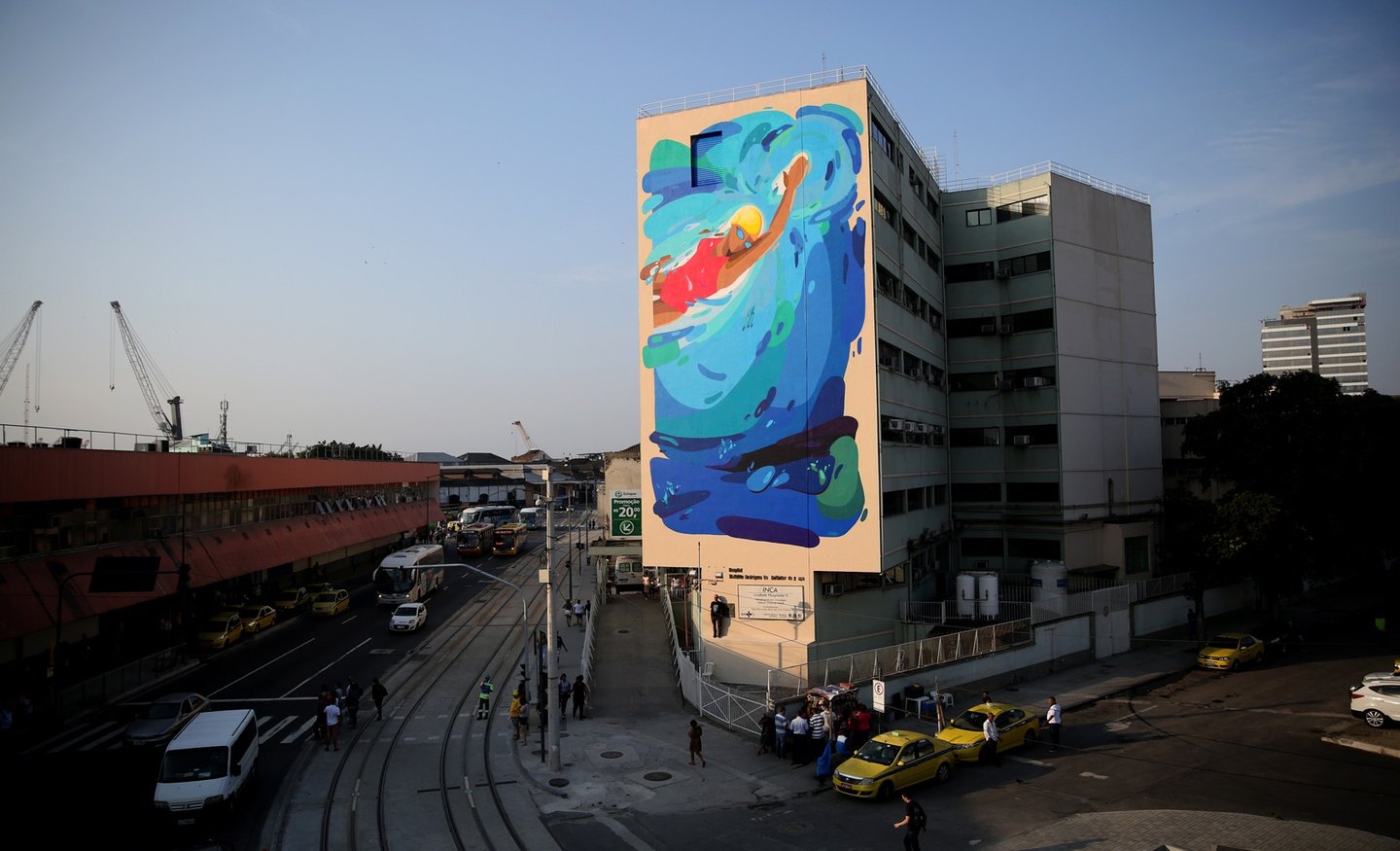 Pintura realizada pelo projeto Rio Esporte Arte em 2018 no hospital INCA HCI, na praça da Cruz Vermelha, Centro, Rio de Janeiro